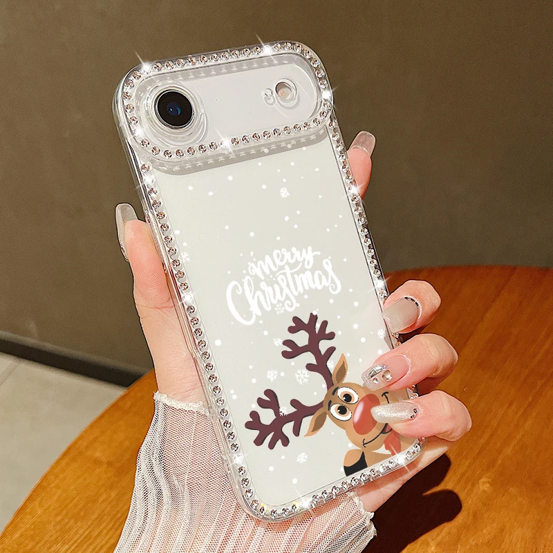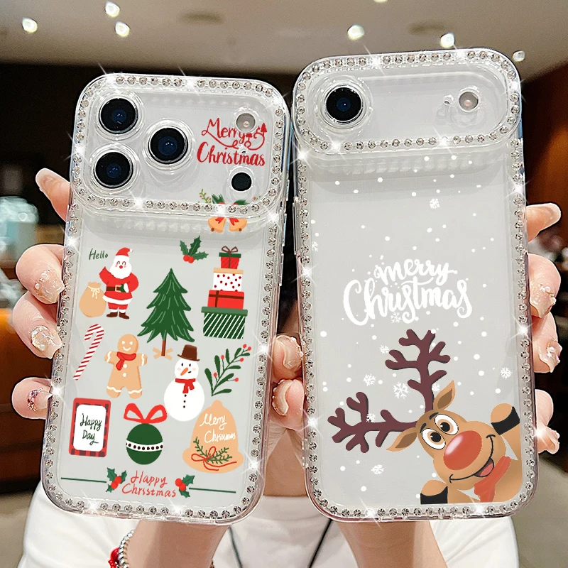 For iPhone 17 Pro Max Case Christmas Elk Santa Claus Diamond Cover For iPhone 13 14 15 12 11 16e 17 Air Funda iPhone 16 Pro Max