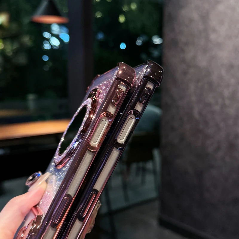The gradient glitter finish of the case adds a shimmering touch to your iPhone, enhancing its aesthetic appeal and making it visually captivating.